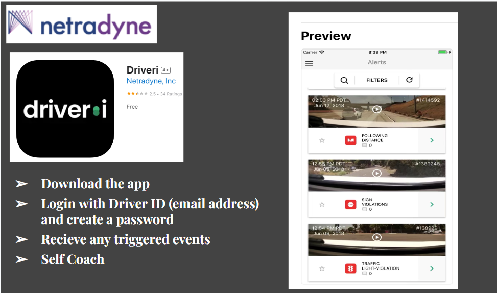 Did you know that our Netradyne Dashcam comes with an app called ‘Driveri’ that gives feedback on your driving performance?