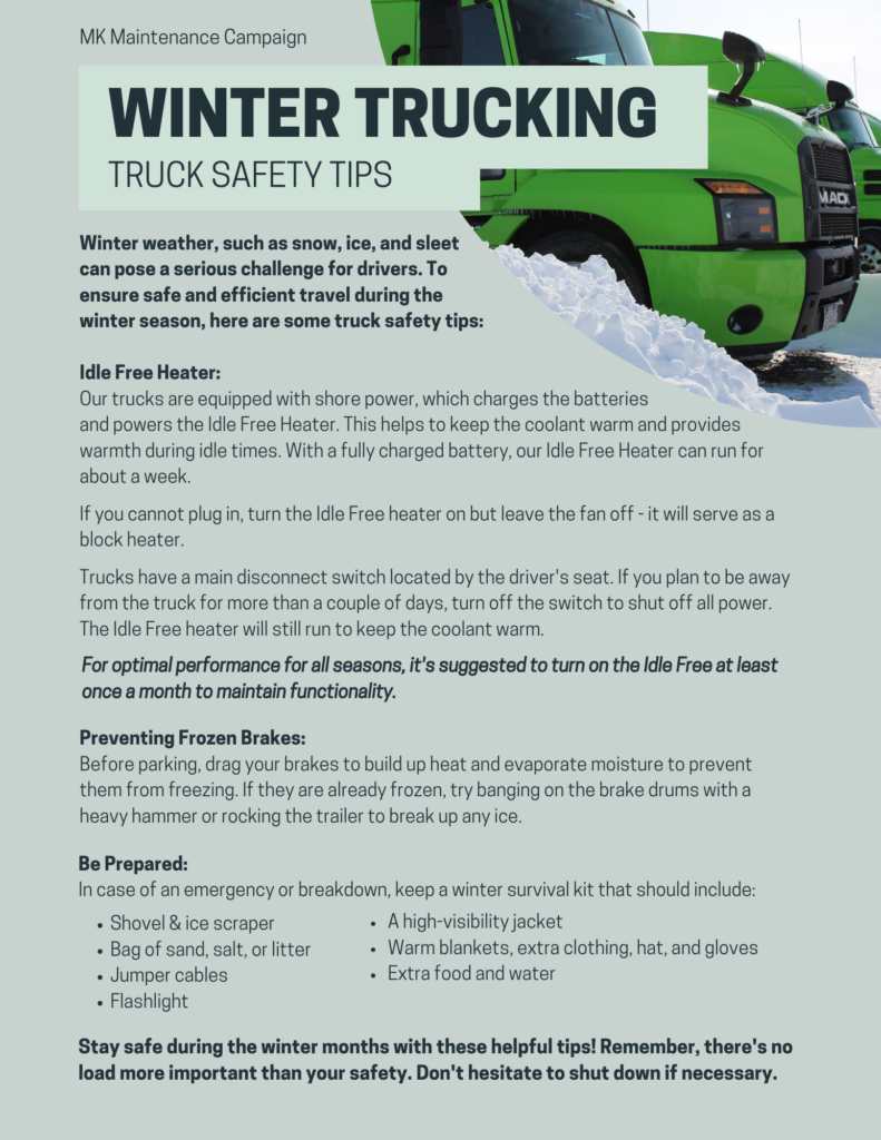 To the entire MK Family, thank you for being such an important part of our team. Thank you for keeping the economy moving and ensuring goods are delivered safely and efficiently. We appreciate all that you do for us here at Marvin Keller Trucking.