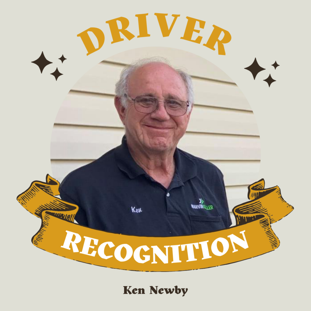 “It’s difficult to summarize Ken’s contributions in just a few sentences. Ken has been driving for 56 years starting at the age of 19. He drove for his uncle for 2 years and then bought his own truck. In 1989, his business grew to a 38-truck fleet running for ADM. He continued with them until Sept of 2001 when he came to Marvin Keller. Ken continued with MK until 2013 when he left to try his hand at running a body shop with his son. In 2018 Ken came back to MK and remains here today. Ken helps the shop by assisting with DOT Inspections on trailers, installing Samsara units on trailers, and identifying and repairing minor maintenance issues. Ken is also a part of our training program primarily working with students on backing skills, using and updating Samsara and Drive MK, or any additional training they may need. We’re incredibly fortunate to have Ken as a member of the MK Family.” – Amy, Owner Operator Program Manager