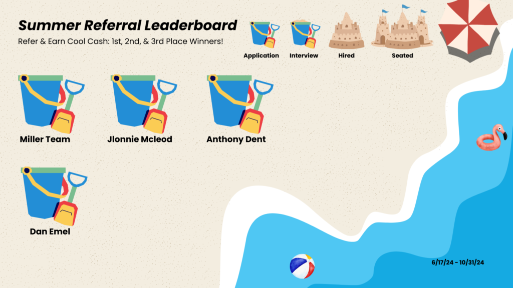Despite our efforts to extend the campaign and increase engagement, we ended up with no completed sandcastles and only four participants in this quarter’s referral contest. Given the low participation, we will only be awarding one referral winner.
