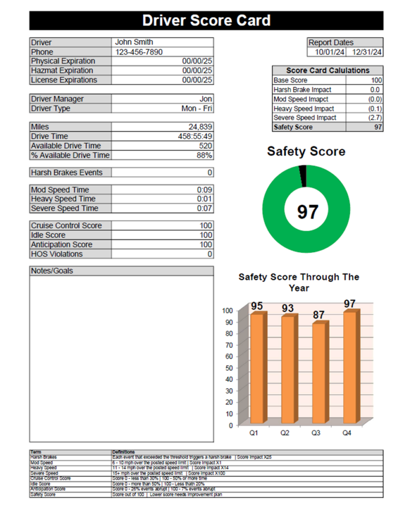 Recognizing Strengths & Areas for Improvement: The scorecard highlights where drivers excel and where support or training may be needed.